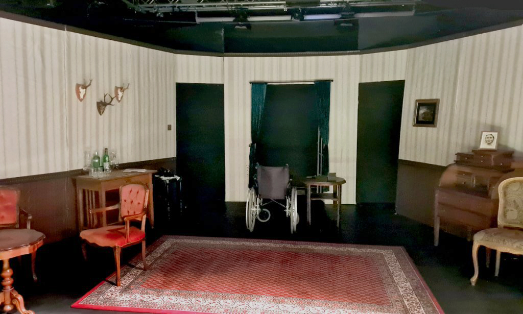 Am Samstag fahre ich erneut nach Frankfurt. Diesmal zusammen mit dem Gatten. Der Sohn spielt in der aktuellen Produktion der Gruppe F.E.S.T. (Frankfurt English Speaking Theatre) im „kulturhaus“ mit und hatte am Vortag Premiere mit „The Unexpected Guest“ von Agatha Christie. Mit auf der Bühne sind nicht nur der Sohn, sondern auch der Rollstuhl und die zwei kleinen Geweihe aus dem Fundus meiner Eltern. Der Sohn spielt den Inspector, der Rollstuhl und die Geweihe stellen sich selber dar.