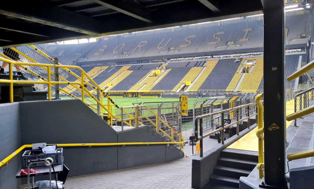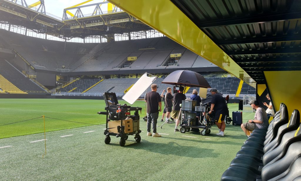 Am nächsten Tag geht es schon um 7 Uhr ab nach Dortmund. Es wird im Fußballstadion gedreht, und die Welt der Fußballbegeisterung ist für mich weit entfernt, etwas skurril, aber auch faszinierend. Die Leidenschaft, mit der dort alle für ihren Verein einstehen, ist deutlich zu spüren. Selbst im unwichtigsten Security-Mann scheint ein schwarzgelbes Herz zu schlagen.