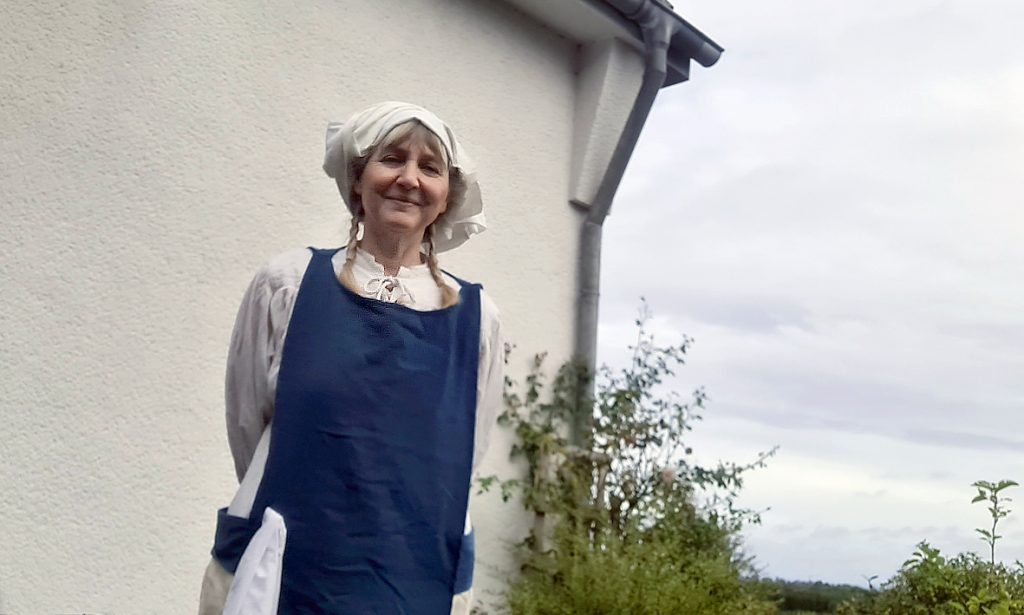 Krimidinner-Termin am Sonntag zur Brunchzeit im Mittelalter. Ob im Mittelalter überhaupt gebruncht wurde? Egal. Ich ziehe mich für meine Rolle passend an – mit dem Überwurf den ich letztens erst an der Nähmaschine zusammengeklöppelt habe – und bringe kleine Quiches aus Mürbeteig zum Essen mit. Kurz hatte ich überlegt, ob ich einen mittelalterlichen Getreidebrei koche, aber wenn der zwar originell ist, aber nicht gegessen wird, ist es ja blöd. Die Gastgeber haben um den Tisch herum Stroh ausgeworfen, was sehr witzig und passend ist.