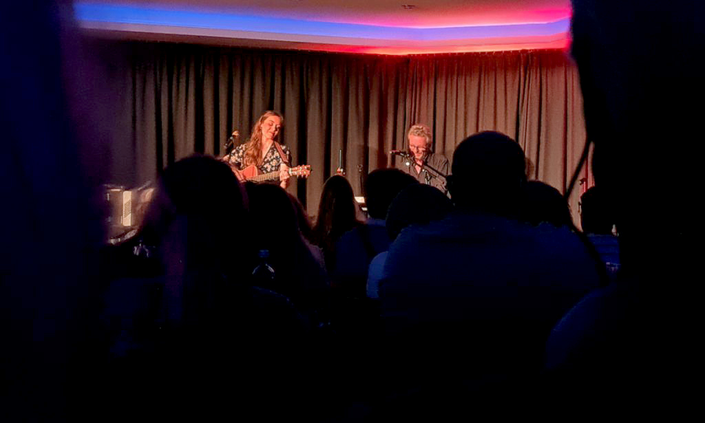 Am nächsten Nachmittag fahre ich nach Limburg, um Purple und Jördis anzusehen. Die Kleinkunstbühne „Thing“ liegt unter der großen Stadthalle und gefällt mir sofort. Leider ist meine Sicht am zugewiesenen Platz im hinteren Bereich des Raumes ein wenig eingeschränkt und meistens sehe ich Jördis links, Purple rechts und zwischen ihnen einen überdimensionierten Hinterkopf. Der ist natürlich nur so groß wegen Perspektive und Nähe und so. Das Programm heißt „ÜbersLeben“ und bringt mir sofortige Tiefenentspannung. Jördis und Purple sind beides tolle Musiker und harmonieren miteinander. Ich sitze, atme und höre zu. Hach, ich mag Purples Stimme so gerne! Das Publikum lauscht ebenfalls, wirkt begeistert und es wird viel geklatscht.