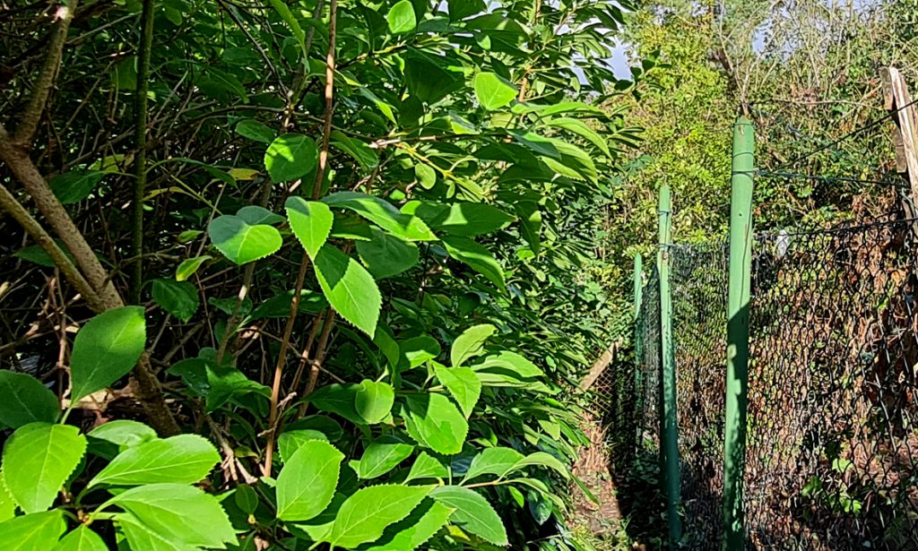 Bei schönem Herbstwetter schneide ich am nächsten Tag im Garten Wege frei, die in den letzten Wochen schon wieder zugewuchert sind. Seit einigen Jahren versuche ich, einen Bereich am Zaun entlang möglichst durchgängig zu haben, was es wesentlich einfacher macht, gegen die rankende Efeu- und Brombeerranken aus den Nachbargärten anzukommen.
