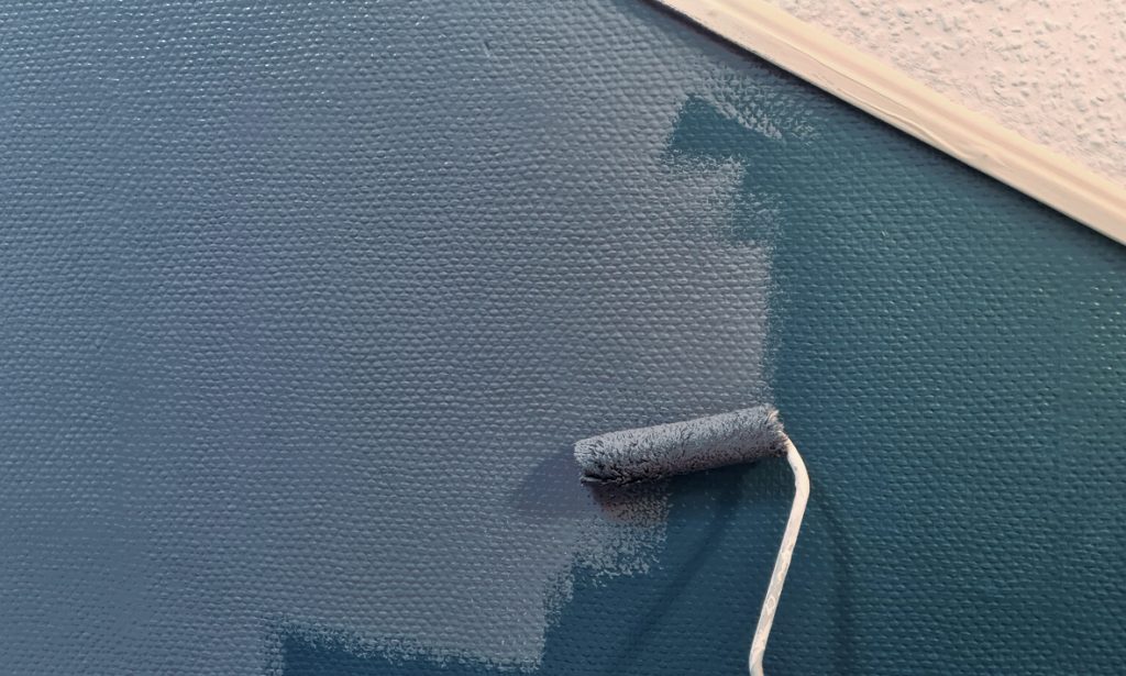 Dann fällt mir auf, dass ich auch den blauen Wandteil im Treppenhaus streichen sollte. Nicht nur tupfend ausbessernd, sondern komplett. Also ab zum Baumarkt, blaue Farbe holen, alle Ränder abkleben und losrollen.