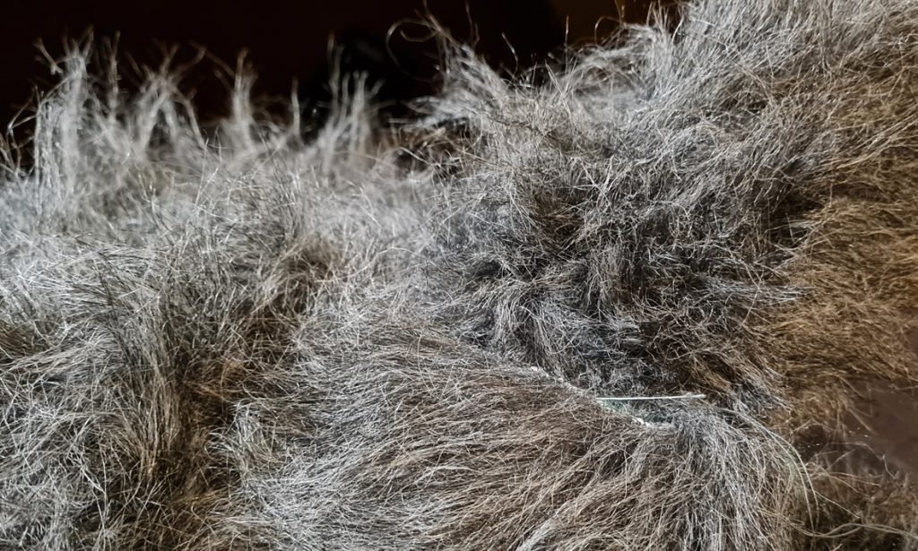 Am Nachmittag ist mein planmäßiger Kreativnachmittag und ich baue einen Körper für den Esel und nähe grauen Langhaarplüsch. Diesmal kommt der Plüsch nur an den Hinterkopf des Esels, was ihm deutlich besser steht. Der Körper verträgt es, wenn er komplett bedeckt wird. Das Nähen ist etwas mühsam, denn Nadel und Faden verfangen sich immer wieder in den Plüschhaaren und müssen befreit und entwirrt werden.