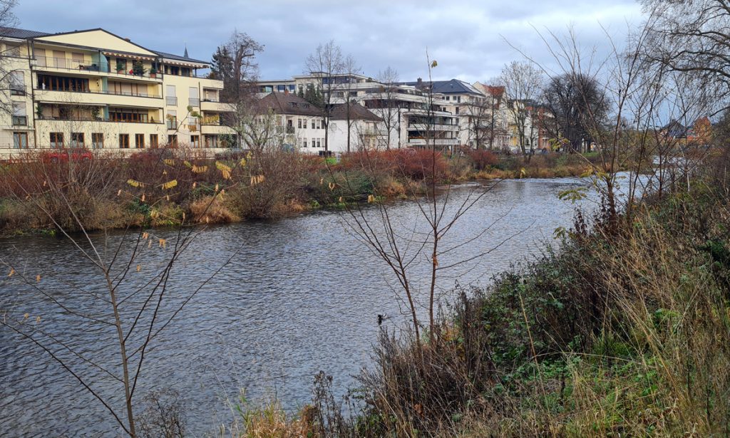 Seine Schwester und ihr Mann kommen zu Besuch ins Krankenhaus und freuen sich ebenfalls, ihn unerwartet gut vorzufinden. Als mein Vater müde wird, gehen wir und wollen in Bad Neuenahr zu dritt noch Kaffee trinken. In der Innenstadt plätschert die Ahr nett vor sich hin und es ist ihr nicht anzusehen, dass sie vor vier Jahren die umstehenden Häuser und Straßen mehr als zwei Meter hoch umspülte. Es ist aber den Häusern anzusehen, die entweder komplett neu gebaut, komplett renoviert oder Ruinen sind. Es ist unwirklich, dass es keine Mischung aus alten und neuen Häusern gibt, sondern fast alles frisch gestrichen und strahlend sauber aussieht.