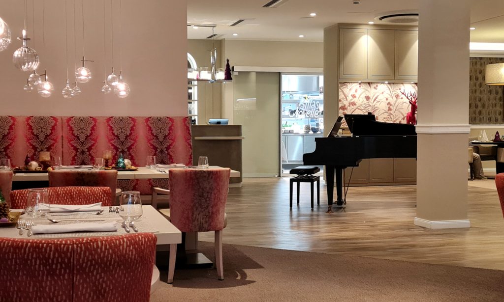 Wegen der vielen Baustellen und gesperrten Straßen haben wir Schwierigkeiten, ein nettes Café zu finden. Doch dann sehen wir ein Schild: „Restaurant, Café, Weinbar“. Oh, das sieht ziemlich exklusiv aus. Als wir das Foyer betreten, erkennen wir, dass es eine 5-Sterne-Senioren-Residenz ist. Wir erklären am Empfangstresen, dass wir ein Café suchen, woraufhin wir zum hauseigenen Café geschickt werden. Wenn wir wollen, können wir uns auch gerne etwas umsehen, sagen sie freundlich. Vermutlich sehen sie in uns potentielle Kunden. Also eher in meiner Tante und meinem Onkel, die zwanzig Jahre älter sind als ich, weniger in mir. Hoffe ich.
