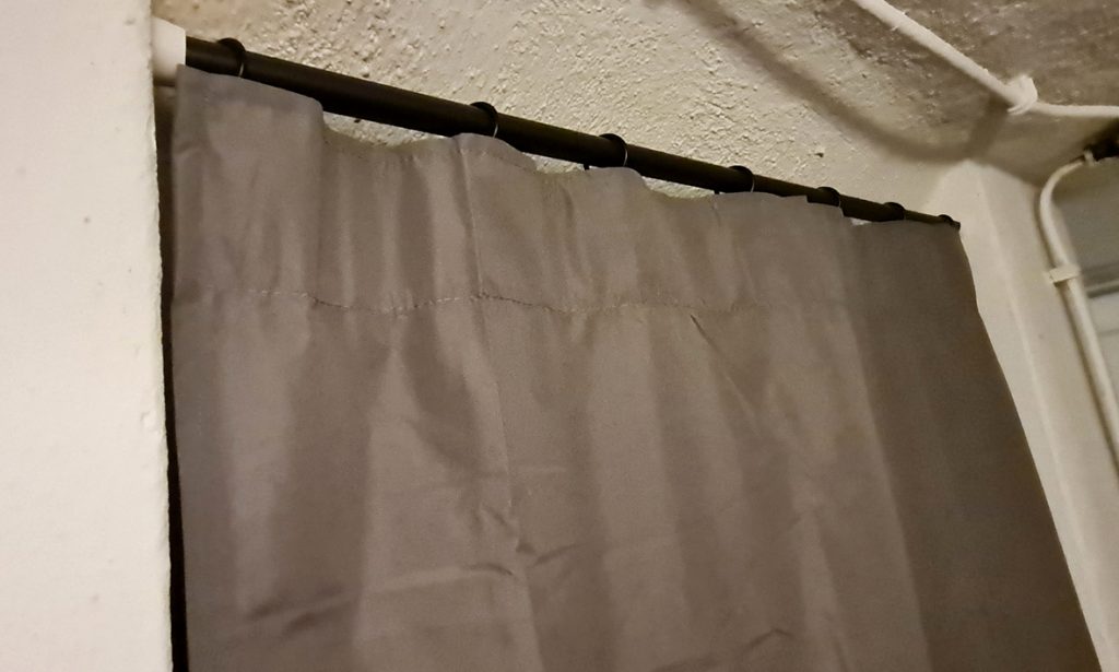 Am Nachmittag bringen wir im Keller Vorhangstangen an und ich nähe die Gardinen passend. Ein Vorhang vor Regale und Abstellflächen gehängt und es sieht gleich ordentlicher aus. Bis zum Abend meldet sich keine Ärztin.