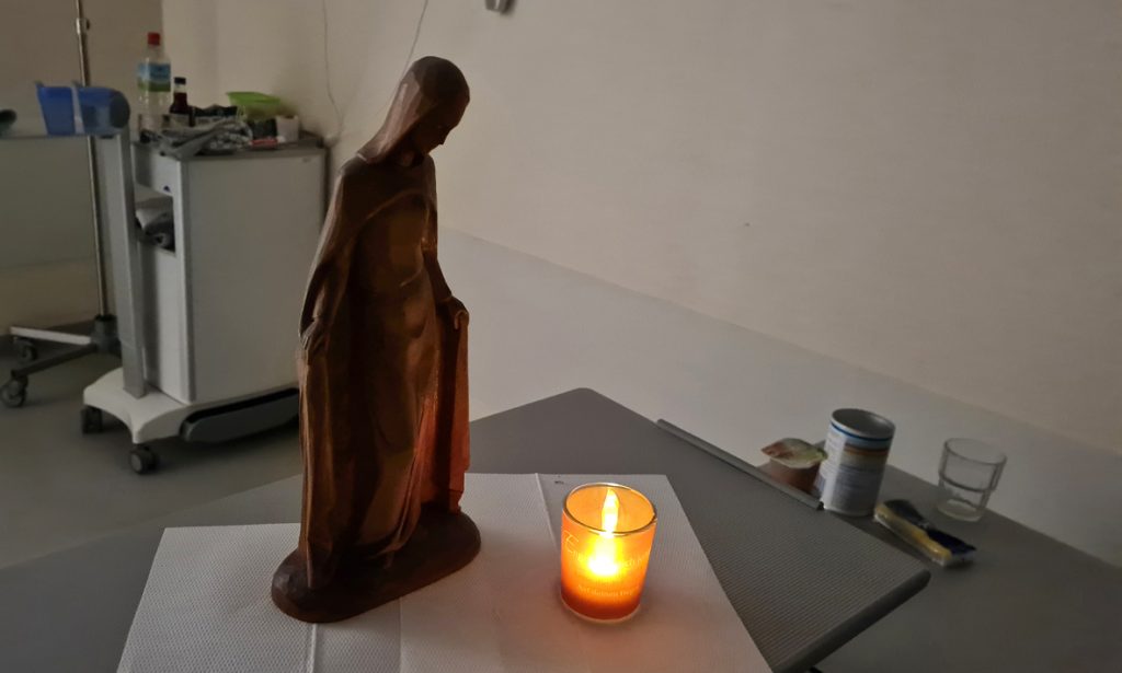 Nach einer Weile packe ich seine Sachen zusammen, versichere ihm – der in den letzten Tagen ständig besorgt und verängstigt war, dass vielleicht niemand weiß, wie es weitergeht und was gemacht werden muss, – dass sie im Krankenhaus jetzt eine Liste haben, die sie Punkt für Punkt abarbeiten. Dass darum alles läuft, ohne dass er sich selber um etwas kümmern muss.
