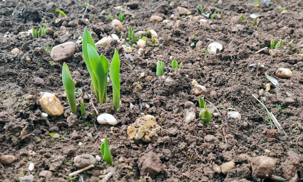 Im Vorgarten sehe ich ganz zufällig, dass kleine grüne Blattspitzen aus dem Boden gucken. Daran habe ich überhaupt nicht mehr gedacht! Mein Tulpenmeer ist auf dem Weg! Aber auch das Unkraut wächst dazwischen schon kräftig los. Kurzentschlossen verlasse ich meinen Platz an den auszusortierenden Kisten und gehe zur Gartenarbeit über. Kniend und auf dem Boden herumrutschend hacke ich das Unkraut sorgfältig weg und schneide danach noch die im Tulpenbeet stehenden Rebstöcke. In den Ratgebern steht, dass der Wein bis „Ende März“, also vor dem Austreiben geschnitten sein sollen, aber bei Klimawandel und mildem Rheinland kommen die Knospen hier erfahrungsgemäß schon Anfang März. So, die Tulpen können kommen! Der Wein dann auch. Ich freue mich schon.