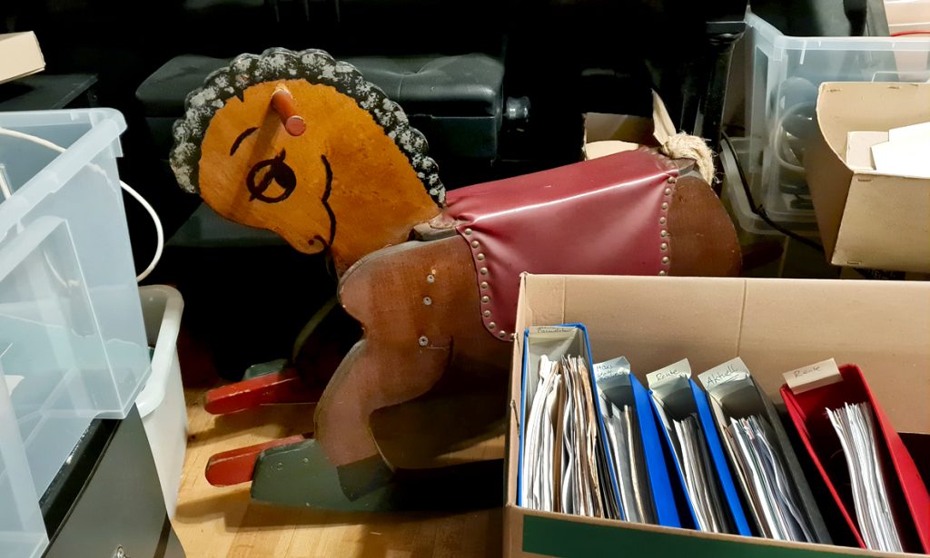 Immer noch ist das Auto voll, wenn ich vom Aussortieren nach Hause komme. Kabel, Sticks, Ordner, beschriftete Zettel und Unterlagen nehme ich inzwischen ungeordnet in großen Kisten mit, um sie zuhause in Ruhe durchzusehen. Wobei mir gerade auffällt, dass ein „ungeordneter Ordner“ sich ja selber widerspricht. Egal. Zum Glück kann ich beim heimischen Sortieren dann vor allem bei den Papiersachen stark ausdünnen. Einige Dinge, wie das alte Schaukelpferd, das ziemlich sperrig ist, das aber mein Opa gebaut hat, will ich behalten.