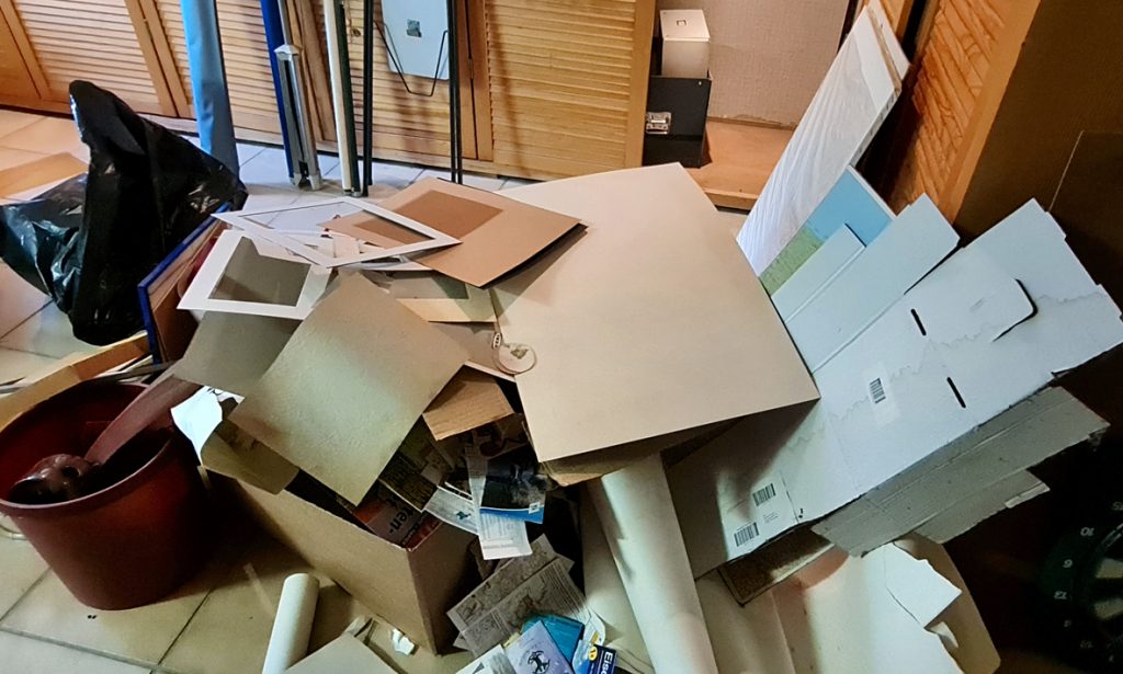 Am Ende des dritten Räumtages habe ich viele große Müllsäcke, kleine Teppiche, Altmetall und aussortiere Elektrogeräte im Auto, fahre kurz zuhause vorbei, um den Gatten einzuladen, und gemeinsam fahren wir weiter zur Deponie, um alles in die entsprechenden Container zu werfen. Es tut gut, Ballast abzuwerfen. Den Gatten nehme ich natürlich wieder mit nach Hause.