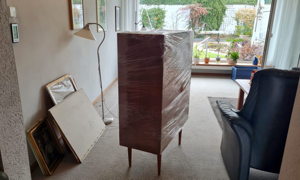 Die ersten Möbel ziehen aus. Nicht nur die massiven Dansk-Möbel aus dem Wohnzimmer, auch meine beiden Teak-Lieblingsschränke aus den Sechzigern, die ich so gerne behalten würde, für die ich aber überhaupt keinen Platz habe. Eine Firma, die Schränke und Tische aus der Zeit aufkauft, aufarbeitet und dann wieder verkauft, hat alle zusammen erworben und holt sie ab. Die Dansk-Möbel sind mir völlig egal, aber bei meinen Lieblingsschränken, die ich seit meiner Geburt kenne, die immer da waren und die ich so sehr mag, muss ich schon schlucken. Und seltsamerweise habe ich während des Raustragens der Schränke das Gefühl, dass jetzt auch meine Eltern ausziehen.