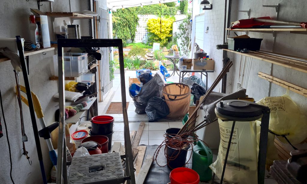 Noch einmal verbringe ich einen halben Tag im Haus meiner Eltern, um den gesamten Restkram aus Gartenhaus, Werkzeugkeller und Garage wegzuräumen. So viel ist da gar nicht mehr. Aber dann kommt schon allein im Gartenhaus viel Kleinkram zusammen und ich werde immer noch nicht fertig. Aber der Rest und der gesammelte Müll stehen jetzt in der Garage und es ist wirklich überschaubar. Meine Schwester ruft an, dass sie einiges vom Müll und die Sachen für das Schadstoffmobil mitnehmen wird, und damit bleibt dann wirklich nicht mehr viel.