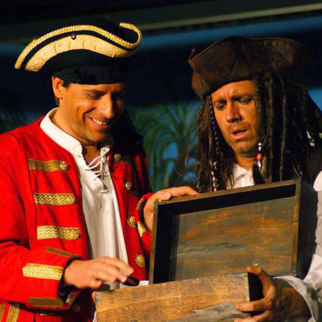 Die gibt es – irgendwie – und nicht ganz wie verabredet, denn richtige Piraten sind gerade schwer aufzutreiben. Eine abenteuerlustige Mannschaft macht sich auf den Weg zur Goldinsel, wo es einen Schatz zu entdecken gibt. Käptn Bellingham versucht die Kontrolle über Schiff, Mannschaft und Schatzsuche zu behalten.